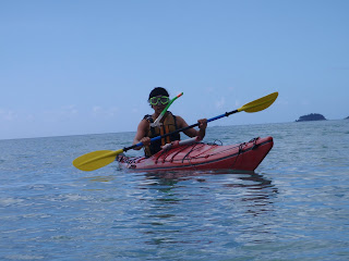 We took the taxi to Airlie Beach and got to Shute Harbor the next morning at 6 am for our briefing with Salty Dog Kayaking Co… don’t know what Kate’s doing to Kimbo here… but it was early.